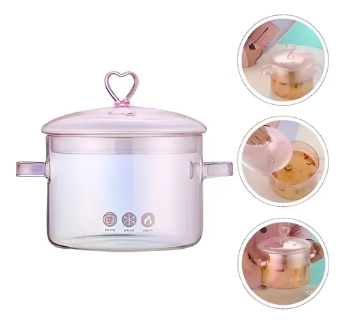 • Esta panela de vidro vem com tampa em vidro, com alça e detalhes em coração, design ergonômico de fácil utilização