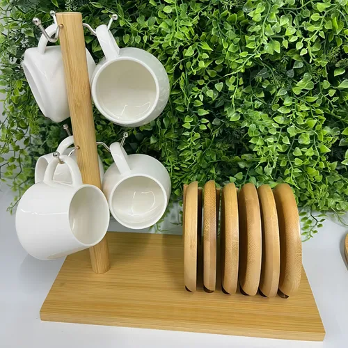 Jogo De 6 Xícaras Café 90ml Suporte De Bambu Oásis Hauskraft.