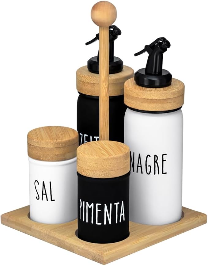 Galheteiro de Vidro com Suporte Bambu Hauskraft