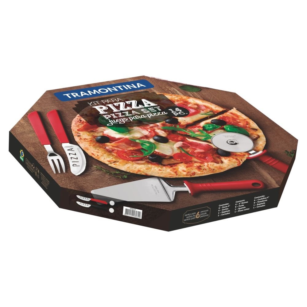 O Kit Pizza Tramontina com lâminas em aço inox e cabos de polipropileno vermelho 14 peças, é o que faltava para o sucesso dos seus encontros em família! São 14 peças perfeitas para servir e saborear suas melhores receitas de pizzas, deixando-as muito mais gostosas.