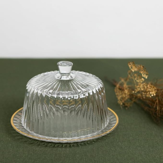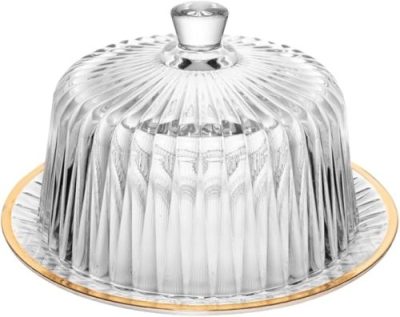 Queijeira de Cristal Ecológico com Tampa e Fio de Ouro Radial 20cm x 20cm x 12,5cm – Lyor