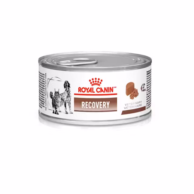 Recovery é um alimento coadjuvante úmido para cães e gatos, com textura que permite uma fácil administração,