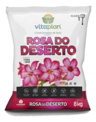 Condicionador de solo especialmente preparado para o cultivo de rosa do deserto, promovendo maior longevidade à planta.